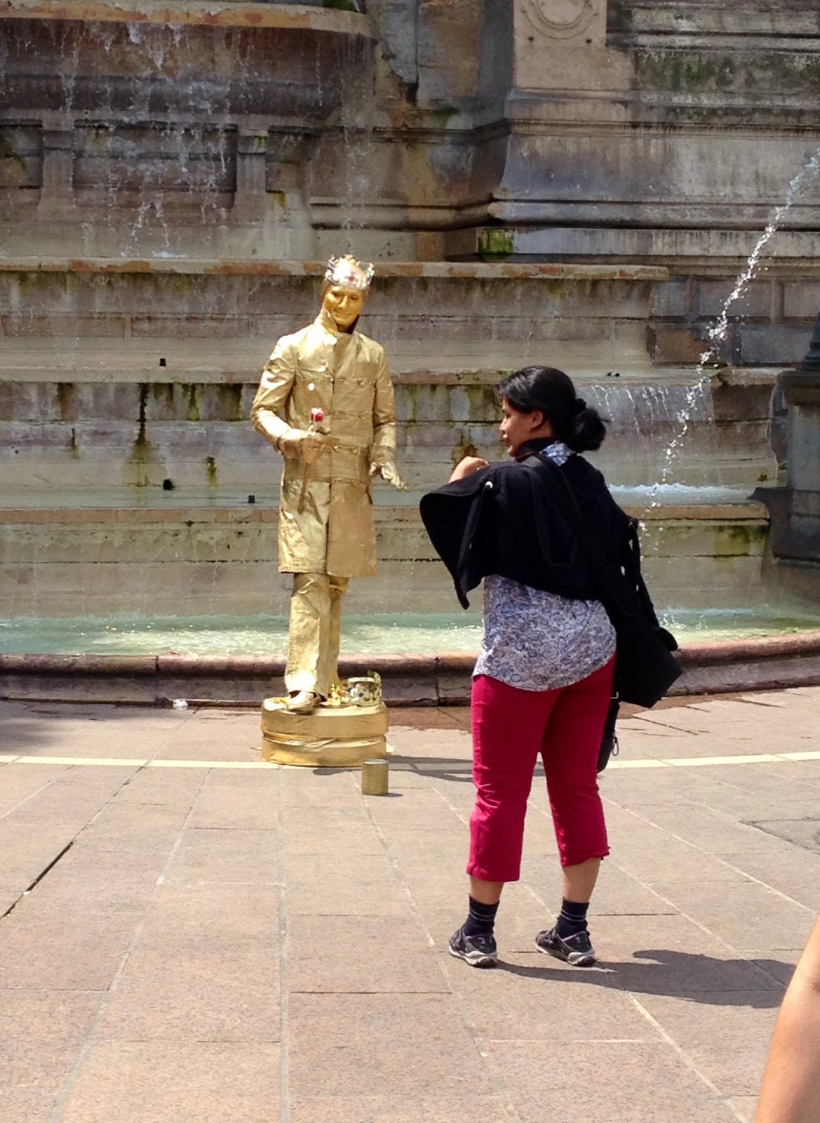 We planned to meet my other pal, Becky in the early afternoon at the Louvre, home of the Mona Lisa. To fill some time, we wandered the Tuileries Garden which backs up to the Louvre. The gardens are very beautiful, and include playgrounds, carousels, fountains, and even restaurants. We stopped for a quick cappuccino at the garden entrance, happy to sip our way down the many paths.
